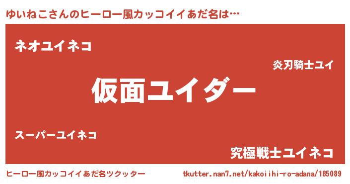 | 女子向けラノベタイトル風あだ名 | 『ゆいねこの玉の輿計画!』 |