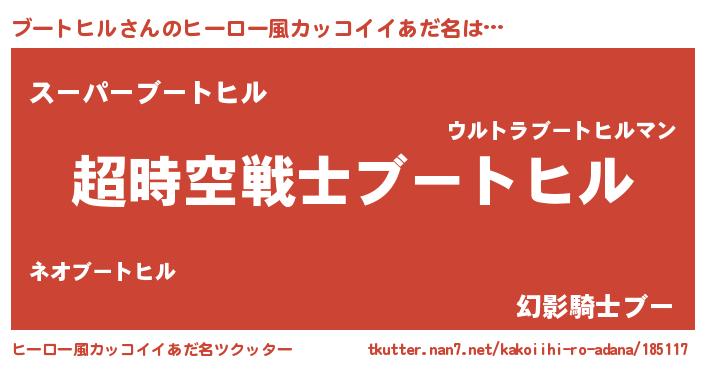 | 女子向けラノベタイトル風あだ名 | 『ブートヒルなんてお断りですっ。』 |