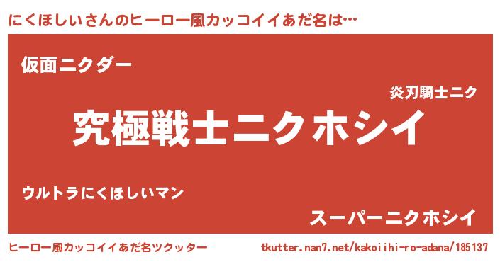 | 男性向けラノベタイトル風あだ名 | 『Re:にくほしいから始める異世界生活』 |
