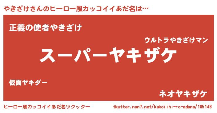 | 男性向けラノベタイトル風あだ名 | 『やきざけ~年齢イコール彼女いない歴の魔法使い~』 |