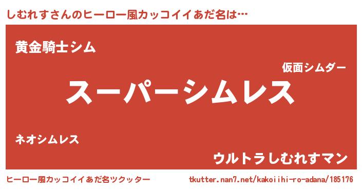 | 男性向けラノベタイトル風あだ名 | 『しむれすの憂鬱』 |
