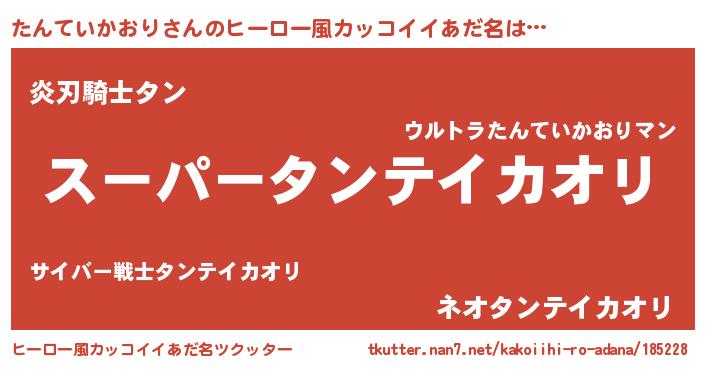| ポケモン風あだ名 | 『タンチュウ』『ヒタンテイカオリ』 |