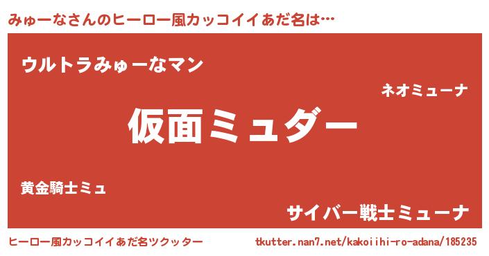 みゅーなさんのヒーロー風カッコイイあだ名をツクッター!