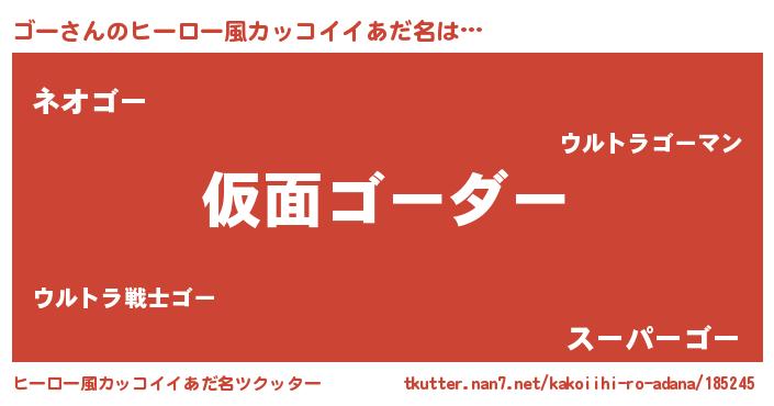 | 男性向けラノベタイトル風あだ名 | 『緋弾のゴー』『魔弾の王とゴー』 |