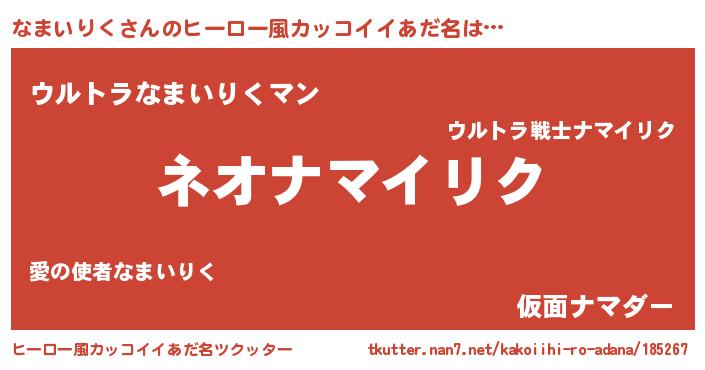| 意味不明あだ名 | 『永久保存なまいりく』『自称なまいりく』 |