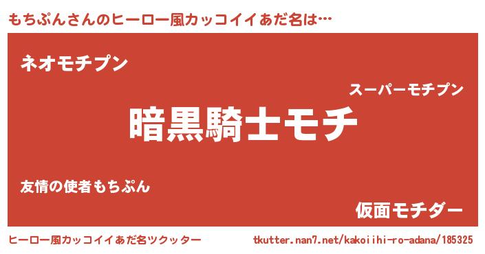 | 男性向けラノベタイトル風あだ名 | 『ダンジョンにもちぷんを求めるのは間違っているだろうか』 |