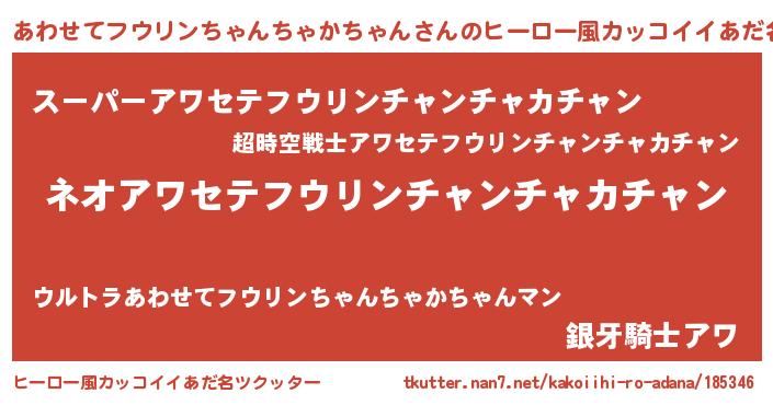 | 胡散臭い通販商品みたいなあだ名 | 『絶対に幸福をもたらす水素水…その名も「あわせてフウリンちゃんちゃかちゃん」』 |