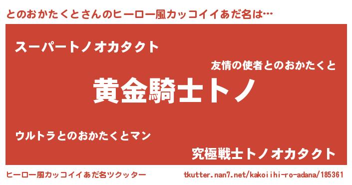 | 胡散臭い通販商品みたいなあだ名 | 『信頼と実績のサプリメント…その名も「とのおかたくと」』 |