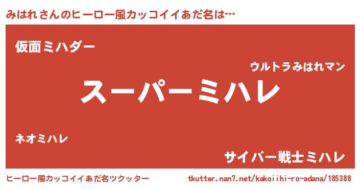 | ヘコむあだ名 | 『みはふぇ~』『酢こんぶ』『みはを』 |