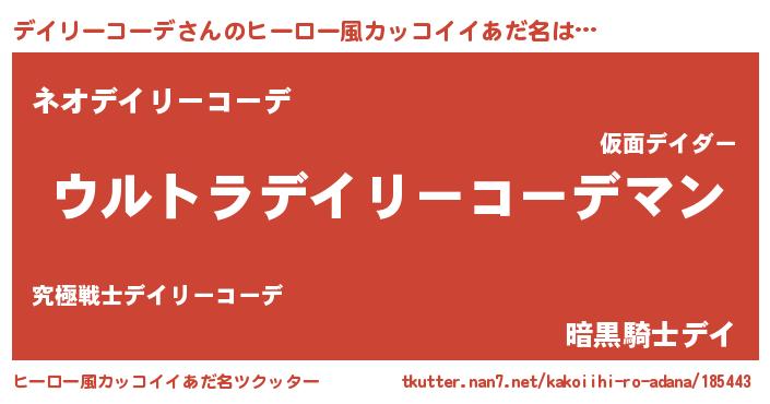 | 伝説のあだ名 | 『最強の忍者デイリーコーデ』 |