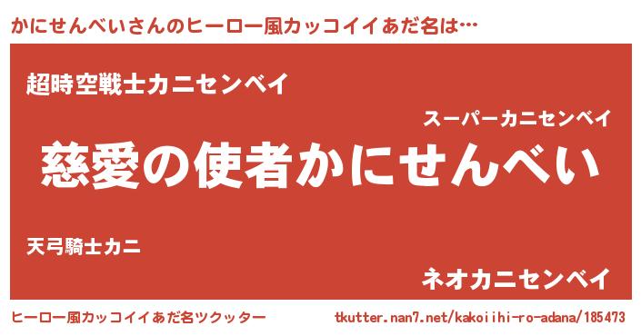 | 男性向けラノベタイトル風あだ名 | 『ノーゲーム・ノーカニセンベイ』 |