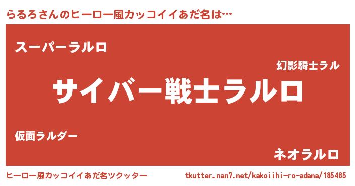 | 意味不明あだ名 | 『自称らるろ』『ペロリンらるろ』 |