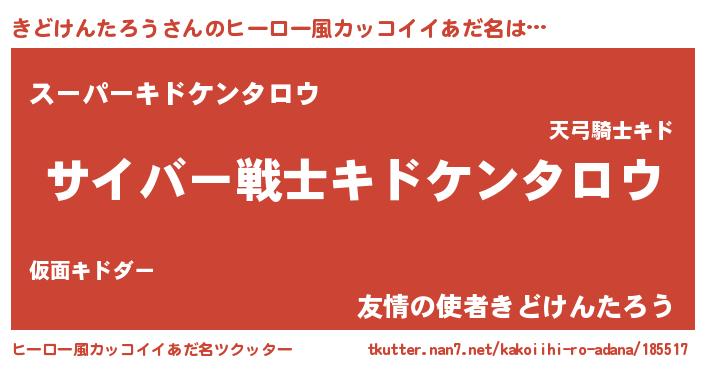 | 男性向けラノベタイトル風あだ名 | 『Re:きどけんたろうから始める異世界生活』 |