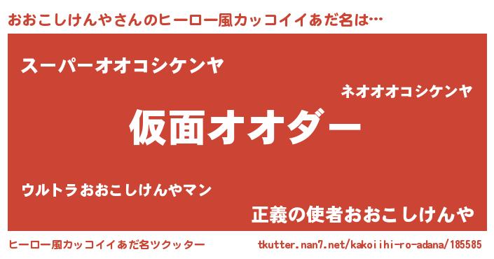 | 男性向けラノベタイトル風あだ名 | 『この素晴らしい世界におおこしけんやを!』 |