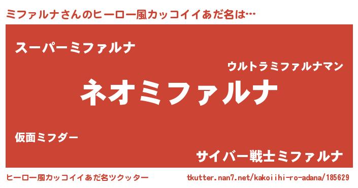ミファルナさんのヒーロー風カッコイイあだ名をツクッター!