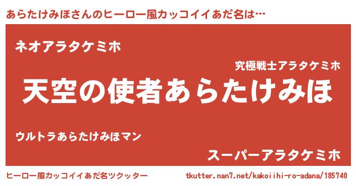 | ヘコむあだ名 | 『あらたけみほ(笑)』『あらっふぃ~』 |