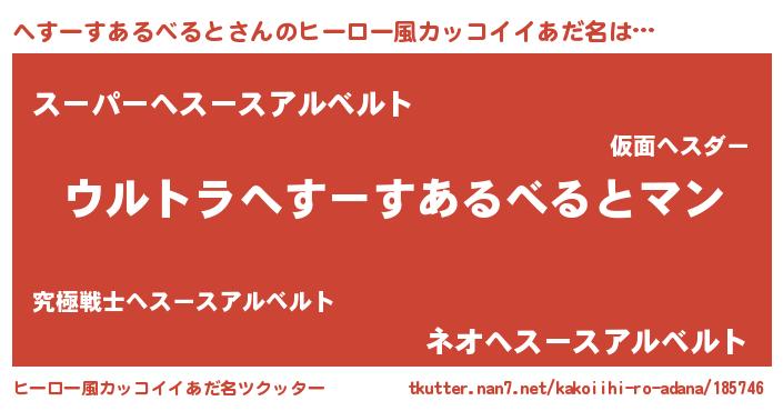 | 意味不明あだ名 | 『へすーすあるべるとフォーエバー』 |