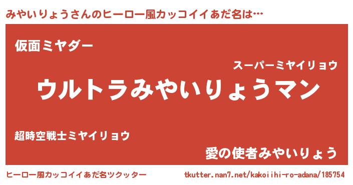 | 男性向けラノベタイトル風あだ名 | 『うちの娘の為ならば、俺はもしかしたらみやいりょうも倒せるかもしれない。』 |
