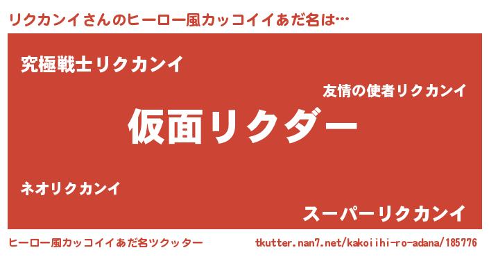 リクカンイさんのヒーロー風カッコイイあだ名をツクッター!