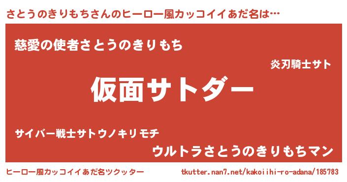 | 男性向けラノベタイトル風あだ名 | 『さとうのきりもち~年齢イコール彼女いない歴の魔法使い~』 |