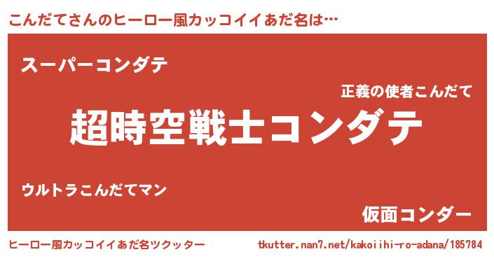 | 意味不明あだ名 | 『自称こんだて』『ペロリンこんだて』 |
