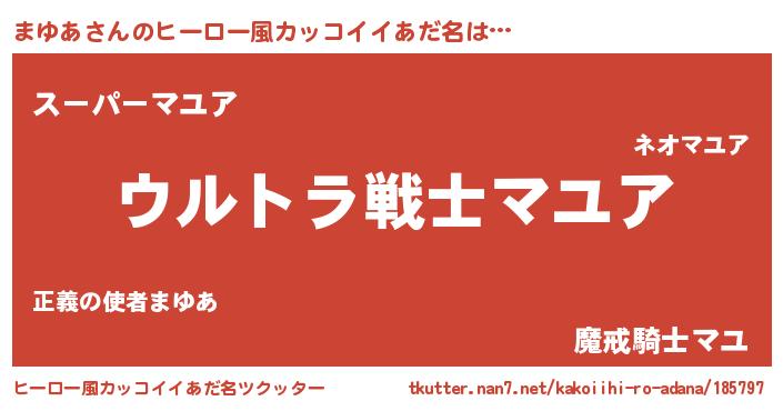 | 男性向けラノベタイトル風あだ名 | 『冴えないまゆあの育てかた』 |