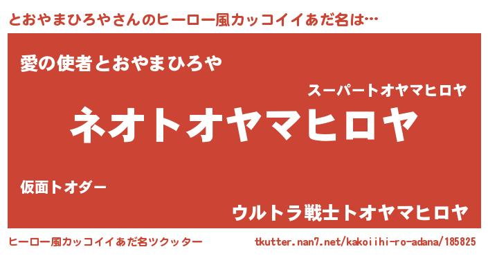 | 男性向けラノベタイトル風あだ名 | 『とおやまひろやという概念が存在しない退屈な世界 』 |