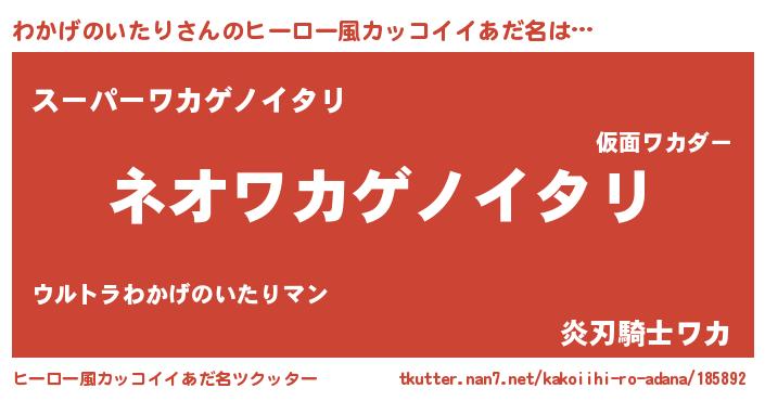| ポケモン風あだ名 | 『ワカゴンZ』『ゼニワカ』 |