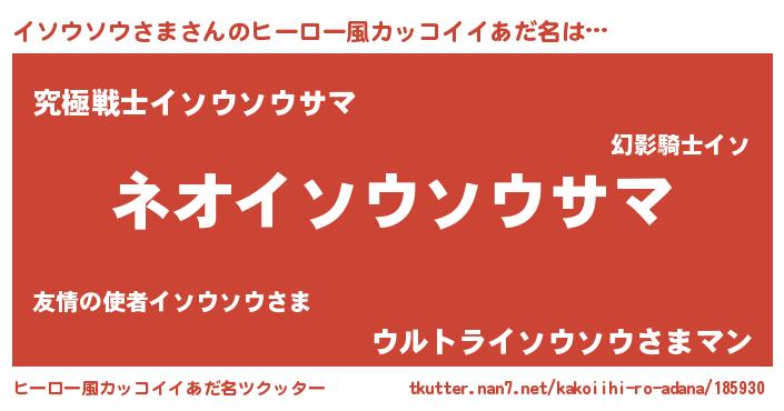 | 男性向けラノベタイトル風あだ名 | 『イソウソウサマスレイヤー』 |