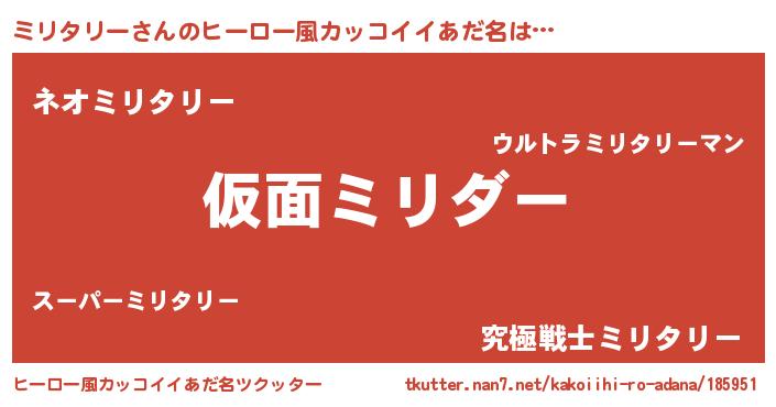 | 意味不明あだ名 | 『住所不定無職ミリタリー(84歳)』 |