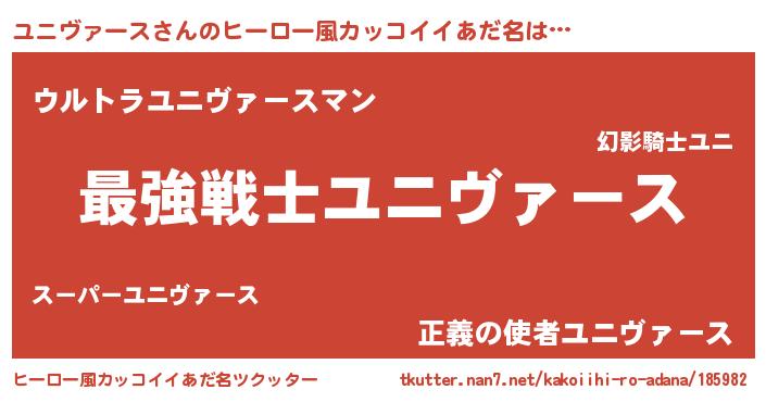 | 男性向けラノベタイトル風あだ名 | 『Re:ユニヴァースから始める異世界生活』 |