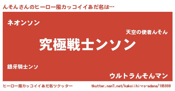 | 意味不明あだ名 | 『自称んそん』『永久保存んそん』 |