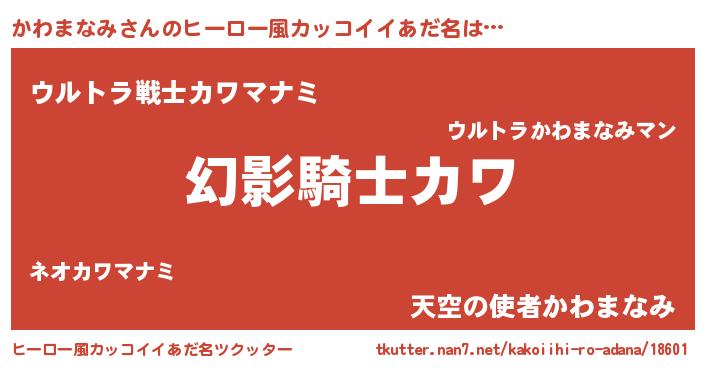 | 胡散臭い通販商品みたいなあだ名 | 『全米が絶賛したサプリメント…その名も「かわまなみ」』 |