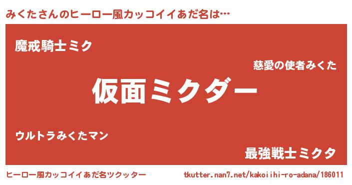 | 男性向けラノベタイトル風あだ名 | 『魔弾の王とみくた』『ミクタスレイヤー』 |