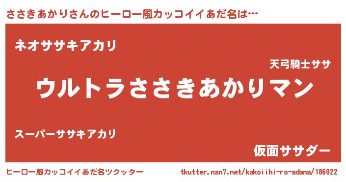 | 男性向けラノベタイトル風あだ名 | 『やはりささきあかりの青春ラブコメはまちがっている 』 |