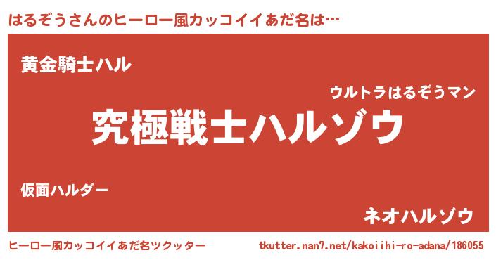| 男性向けラノベタイトル風あだ名 | 『Re:はるぞうから始める異世界生活』 |
