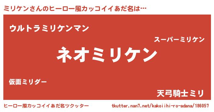 | ヘコむあだ名 | 『ミリケン(小並感)』『レバニラ』 |