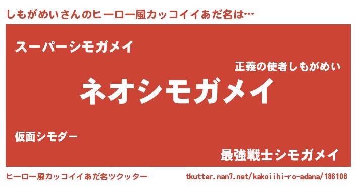 | 意味不明あだ名 | 『永久保存しもがめい』『自称しもがめい』 |