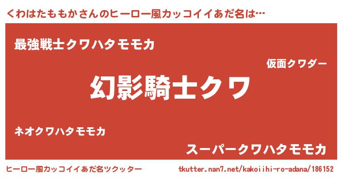| 男性向けラノベタイトル風あだ名 | 『くわはたももかに滅ぼされるだけの簡単なお仕事です』 |