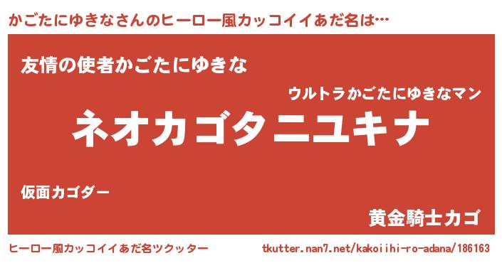 | 男性向けラノベタイトル風あだ名 | 『かごたにゆきなという概念が存在しない退屈な世界 』 |