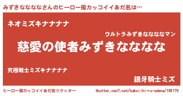 | 男性向けラノベタイトル風あだ名 | 『ノーゲーム・ノーミズキナナナナ』 |
