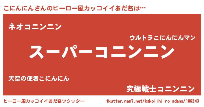 | 意味不明あだ名 | 『ペロリンこにんにん』『自称こにんにん』 |