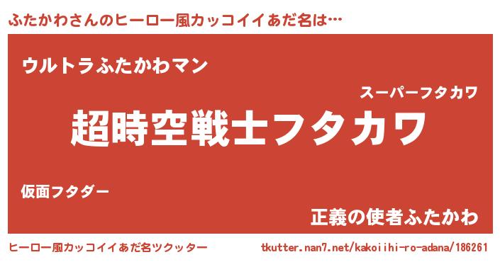 | 女子向けラノベタイトル風あだ名 | 『ふたかわなんてお断りですっ。』 |