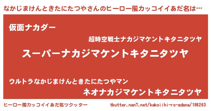 | 男性向けラノベタイトル風あだ名 | 『ナカジマケントキタニタツヤアートオンライン』 |
