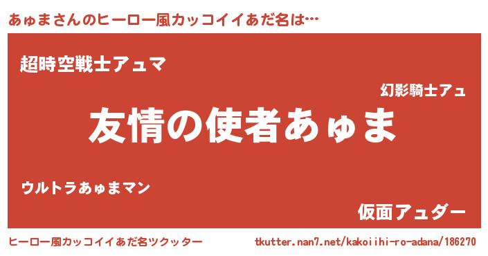 | 男性向けラノベタイトル風あだ名 | 『おまえをオタクにしてやるから、俺をあゅまにしてくれ! 』 |