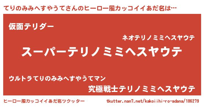| 男性向けラノベタイトル風あだ名 | 『テリノミミヘスヤウテアートオンライン』 |