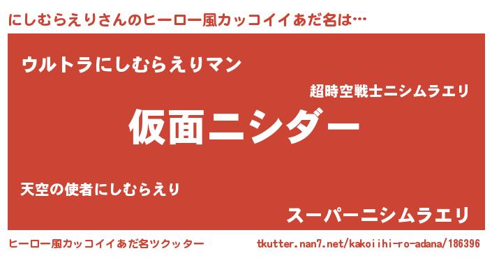 | 意味不明あだ名 | 『住所不定無職にしむらえり(68歳)』 |