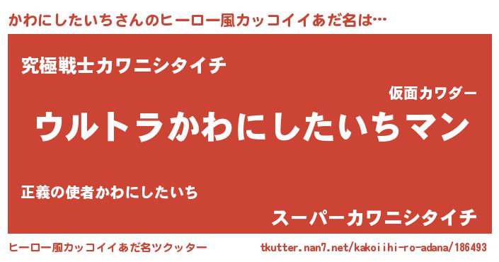 | 男性向けラノベタイトル風あだ名 | 『かわにしたいちに滅ぼされるだけの簡単なお仕事です』 |
