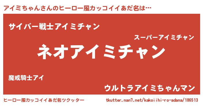 | 意味不明あだ名 | 『永久保存アイミちゃん』 |