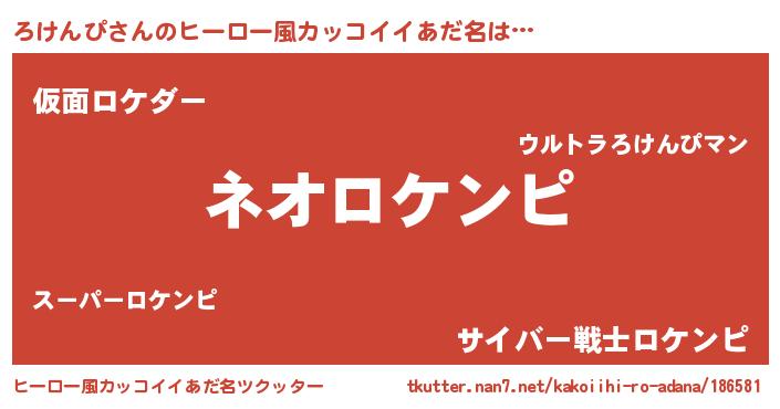 | 男性向けラノベタイトル風あだ名 | 『ろけんぴという概念が存在しない退屈な世界 』 |